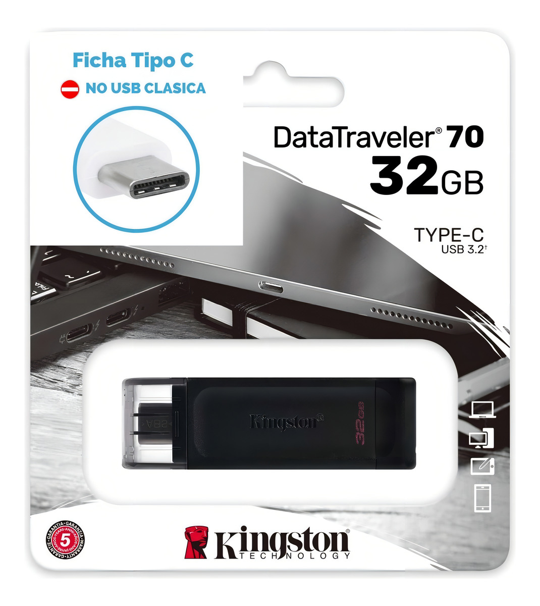 Pendrive Kingston Datatraveler 70 Dt70 Usb-c 32gb 3.2 Gen 1 Negro Type C