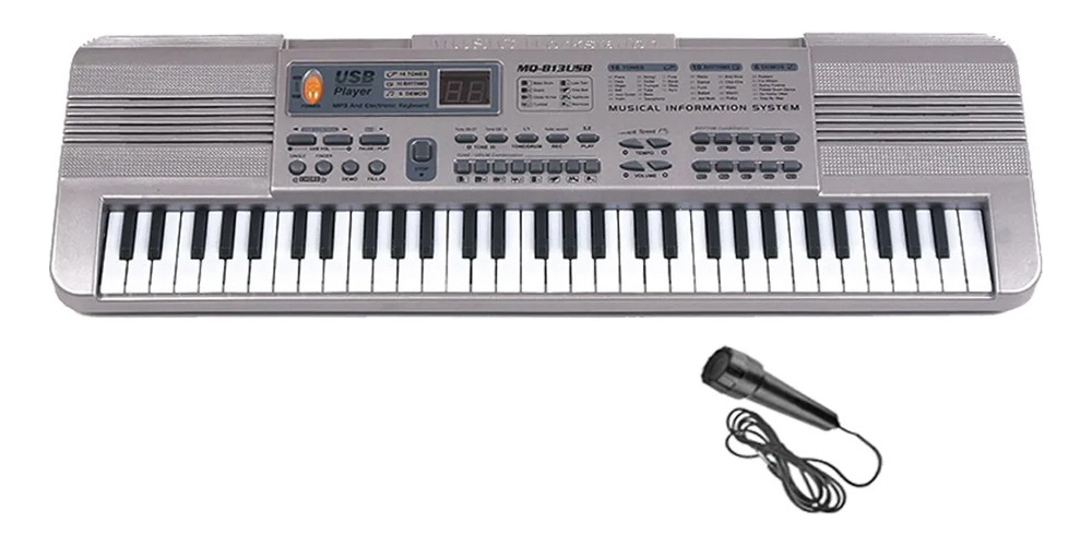 Nuevo Teclado de juguete para niños, con 61 teclas musicales, además cuenta con 16 tonos, los tonos cambian el sonido de cada tecla, puedes conectarle memorias usb con musica mp3 y las reproducirá. un gran instrumento para que los más pequeños desarrollen sus habilidades musicales, motoras y el oido desde temprana edad.
