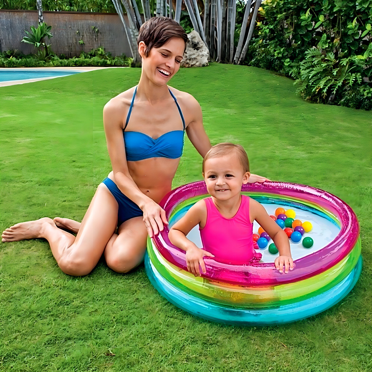 Su capacidad de 63 litros lo convierte en un lugar divertido apto para niños y niñas de hasta 2 años, donde pueden jugar y disfrutar de horas en el agua.