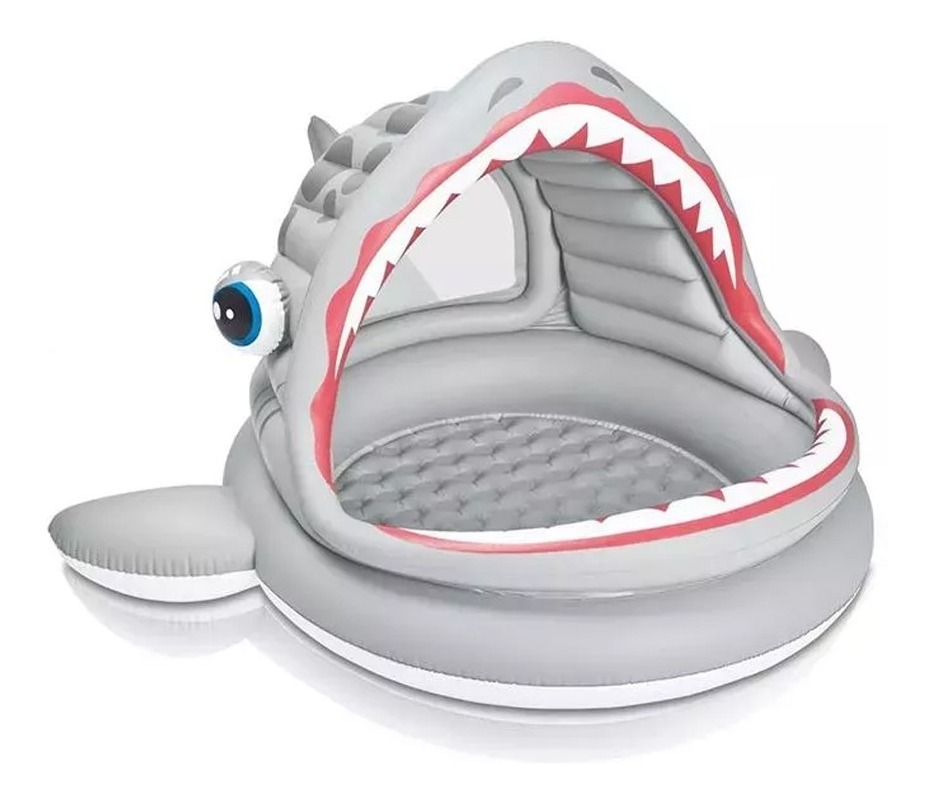 Pileta Inflable Con Techo Diseño De Tiburon 121 Lts + Parche