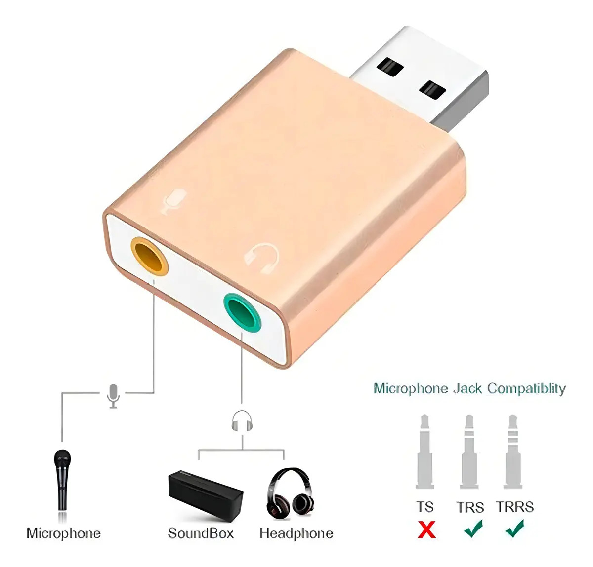 -Mejora la calidad de audio de tu computadora de forma rápida y sencilla con la placa de sonido USB externa Noga. Ideal para quienes necesitan una solución práctica para conectar auriculares, micrófono o parlantes sin abrir la PC.