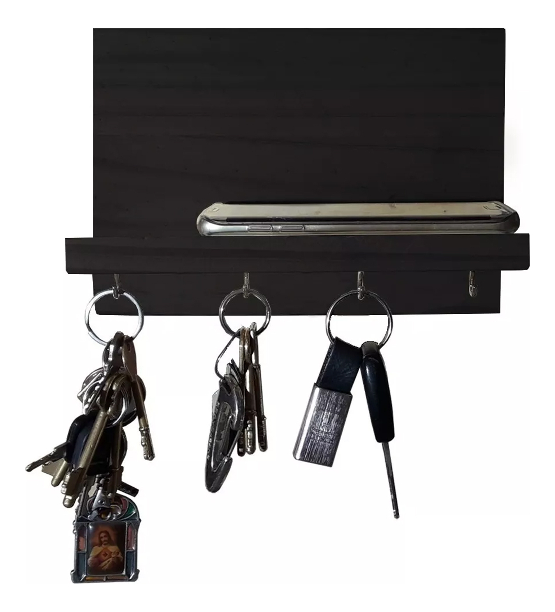 OPCION 3 (7915): Porta Llave De Madera Organizado Color Negro