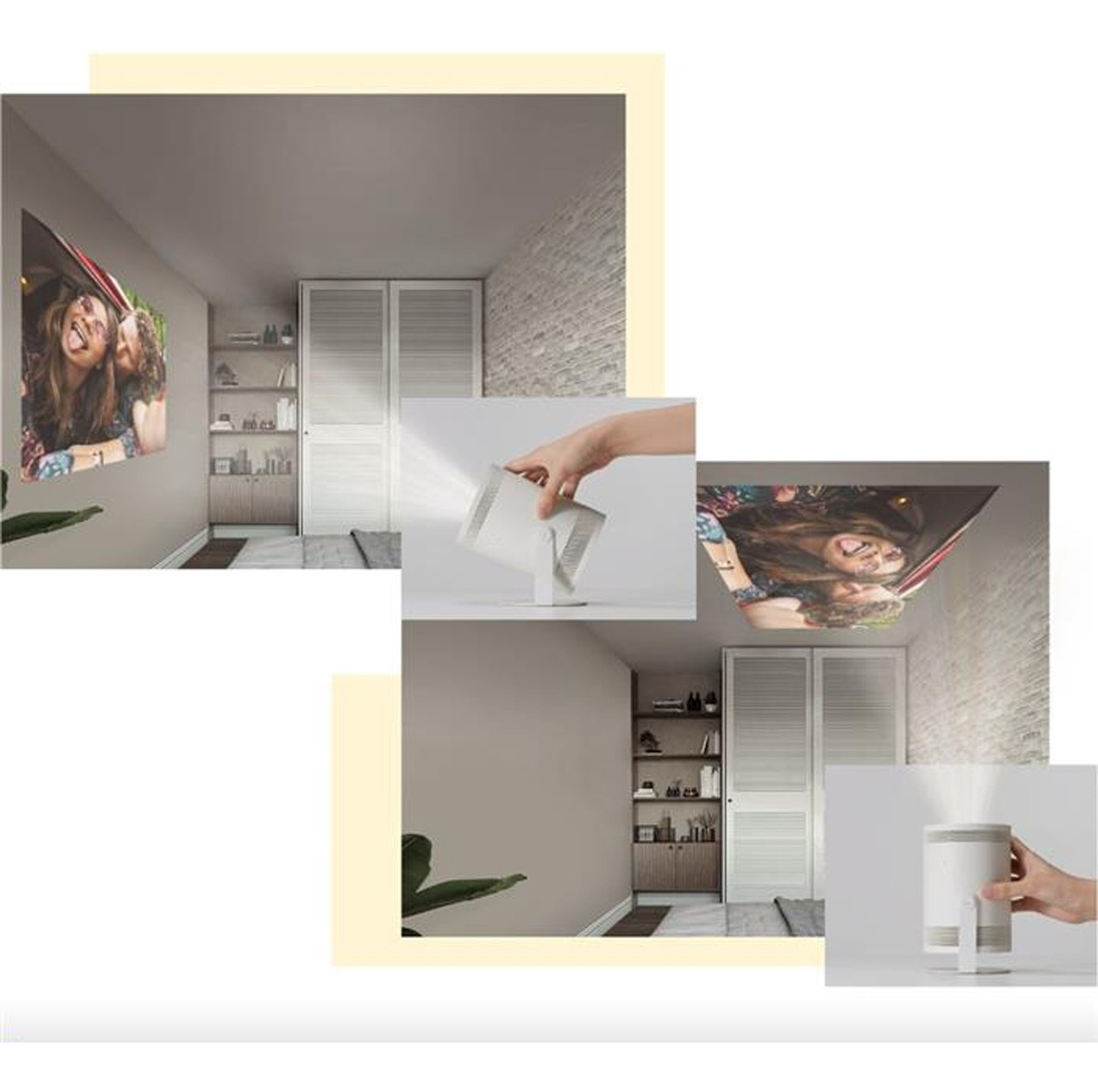 – Con este proyector, elige un lugar, colócalo, inclínalo y mira el contenido, cobrar vida con el teatro inteligente