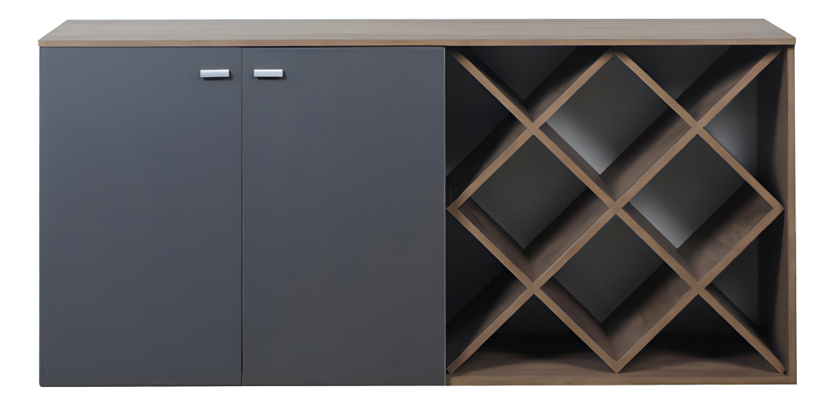 Rack Mesa Para Tv Bahiut Comoda Bar 2 Puertas + Bodeguero! Color Nebrasca Gris/ Gris Sombra