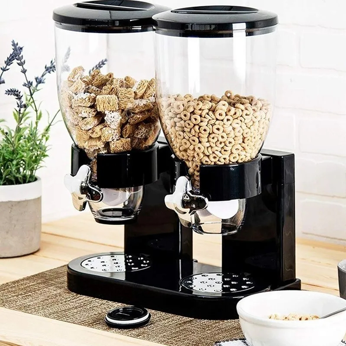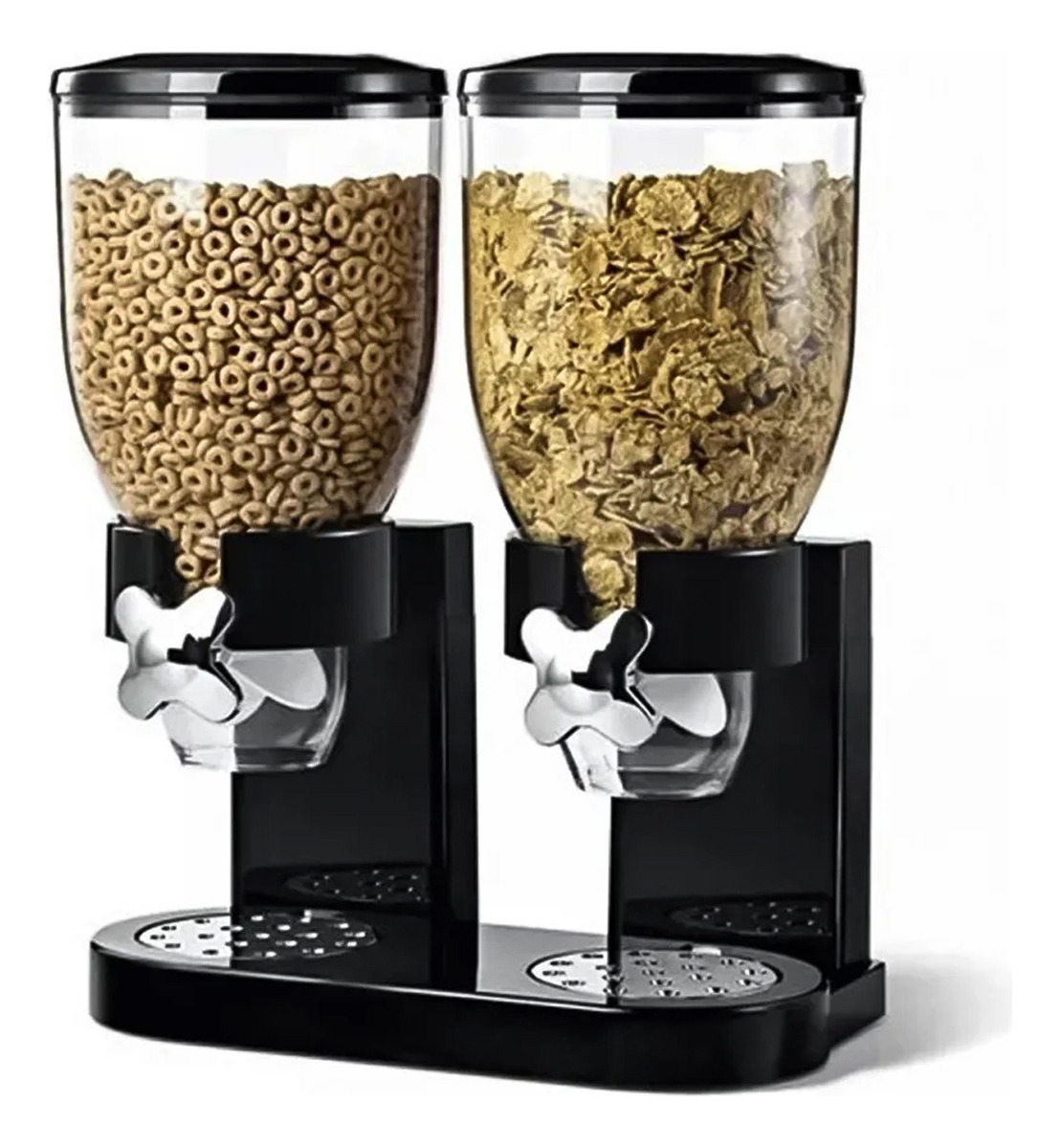 – Dispensador doble, ideal para almacenar y servir dos tipos de cereales