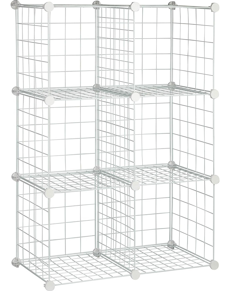 – La estantería de rejilla metálica es ideal para organizar o exponer tus objetos favoritos