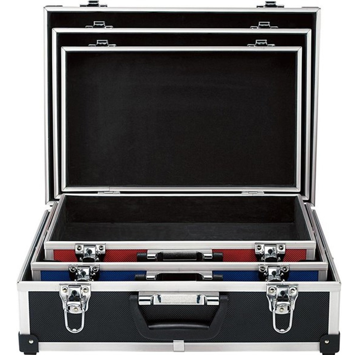 Set De 3 Maletines Reforzados Caja De Herramienta Premium Negro/azul/rojo