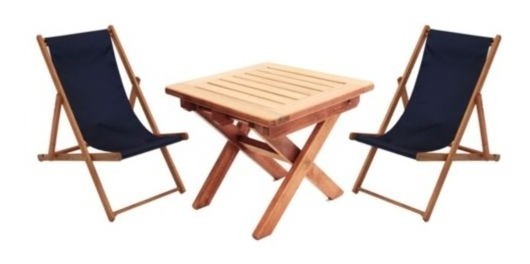 Set Plegable Mesa + 2 Reposeras Madera Renovable Ramos Mejía