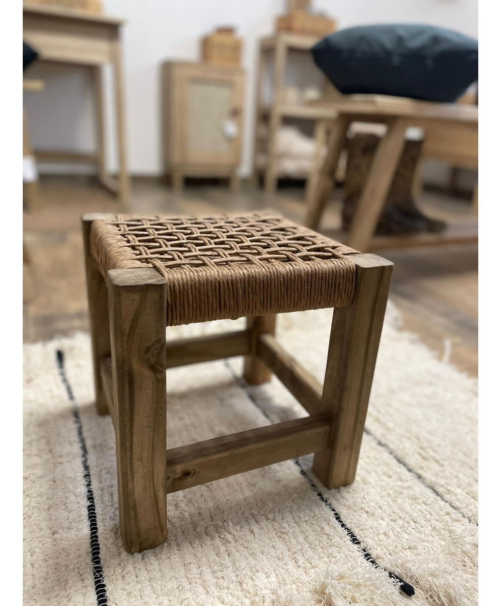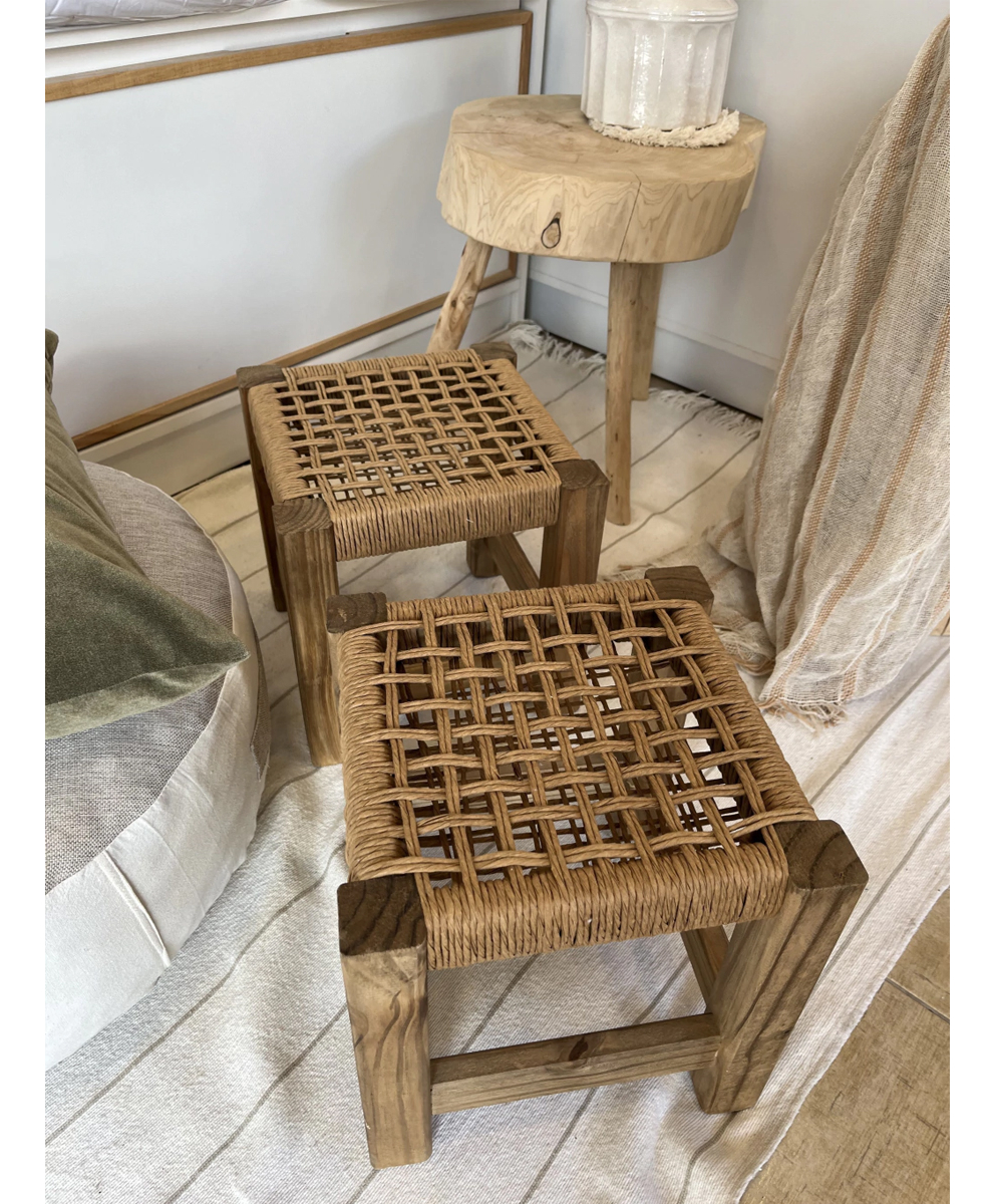 Set De 2 Bancos De Pie Pequeños Con Hilo Kraft Madera Maciza