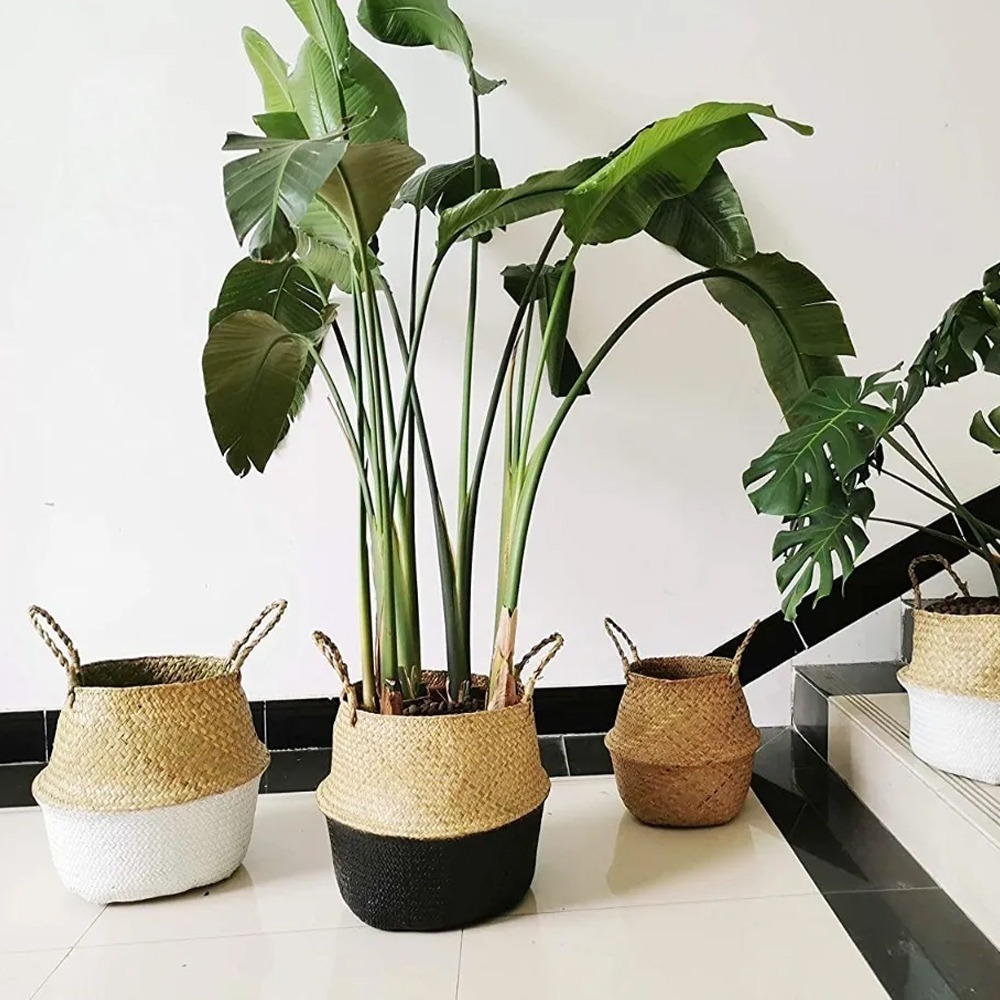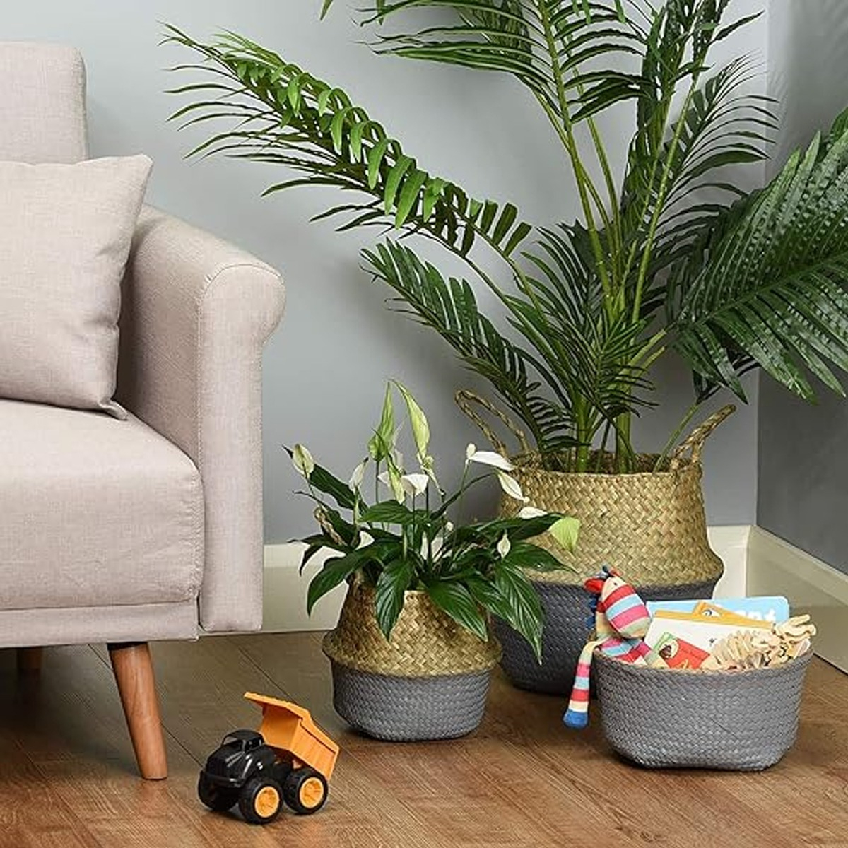 Set X2 Canastos Seagrass Tejido Organizador Maceta Premium