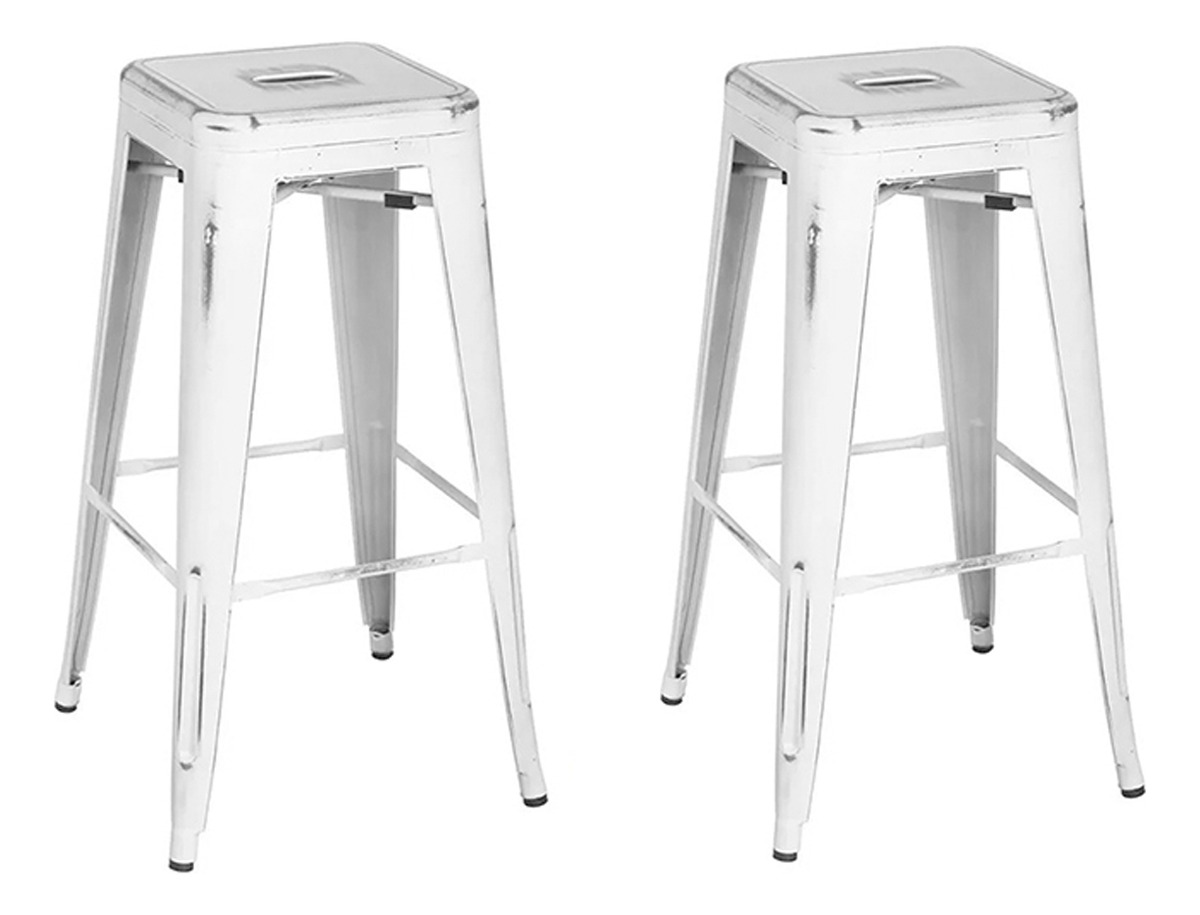 Set X2 Taburete Banqueta Alta Tolix Vintage De Cocina 76cm Apilable