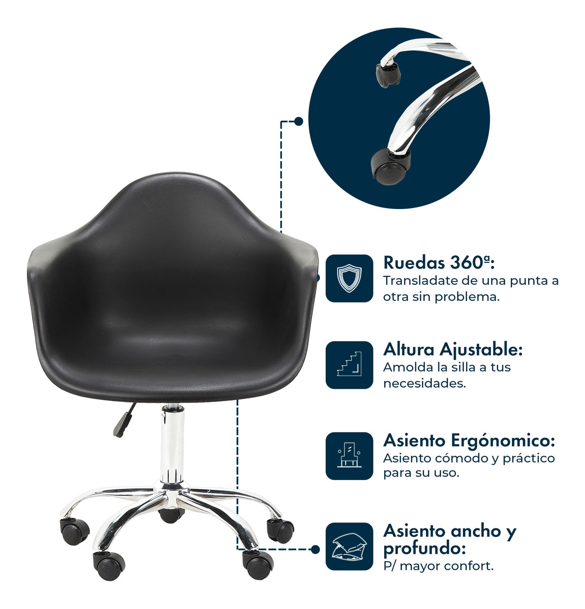 Sillon Eames De Escritorio Oficina Giratorio Con Ruedas Gardenlife Color Negro Goma