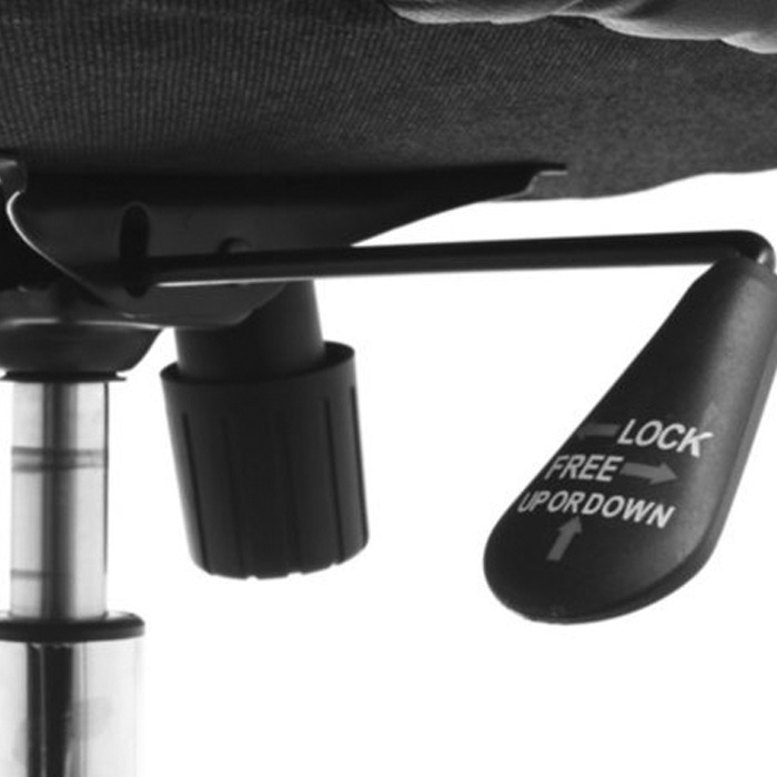 Posee apoyabrazos, respaldo medio, relleno de espuma (densidad 24 y 16 Kg/m3), regulación de altura mediante sistema a gas, base de nylon con 5 ruedas, material de plástico y poliuretano y una capacidad para soportar hasta 100 kilos de peso.
