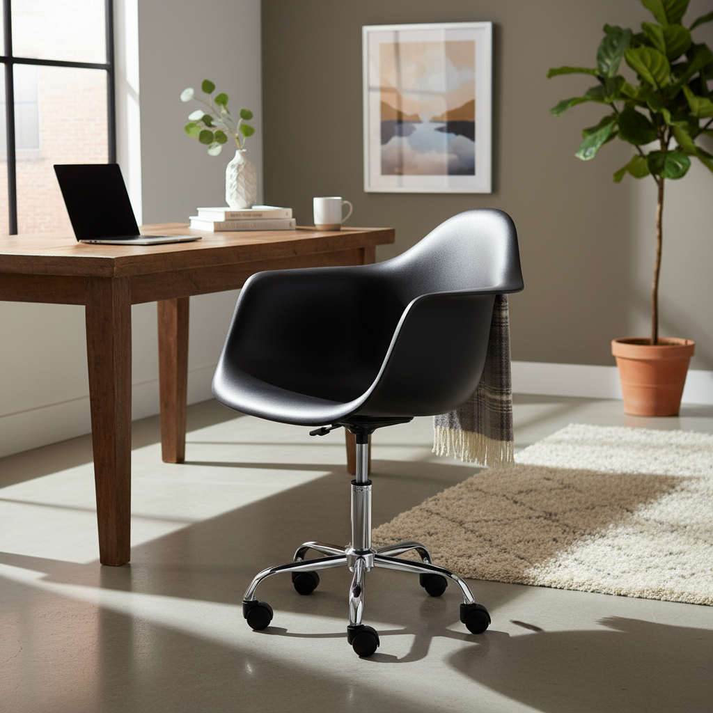 Sillon De Oficina Eames Giratorio Con Ruedas Negro