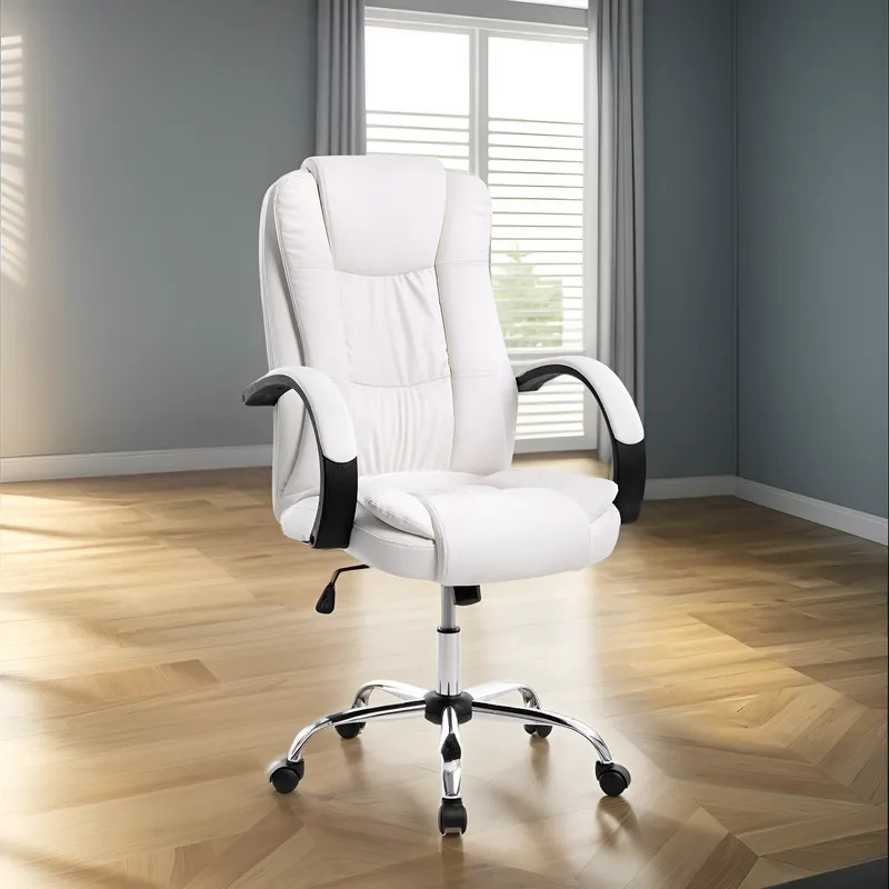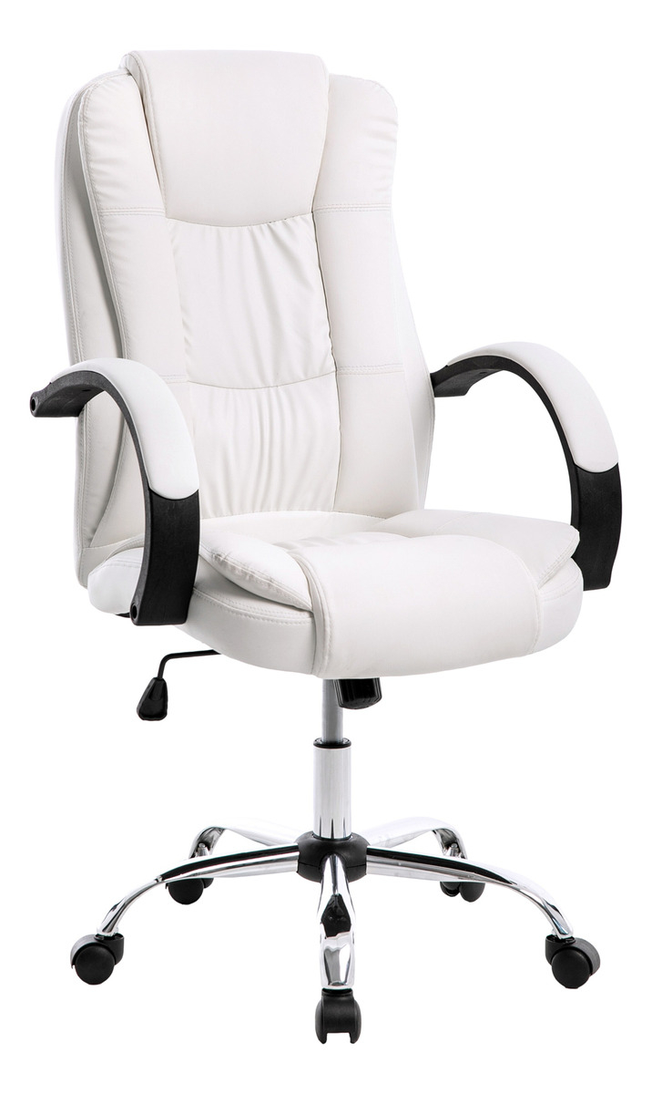 Sillon Oficina Basculante Ejecutivo Gerencial Pc Escritorio Color Blanco Cuero Sintético