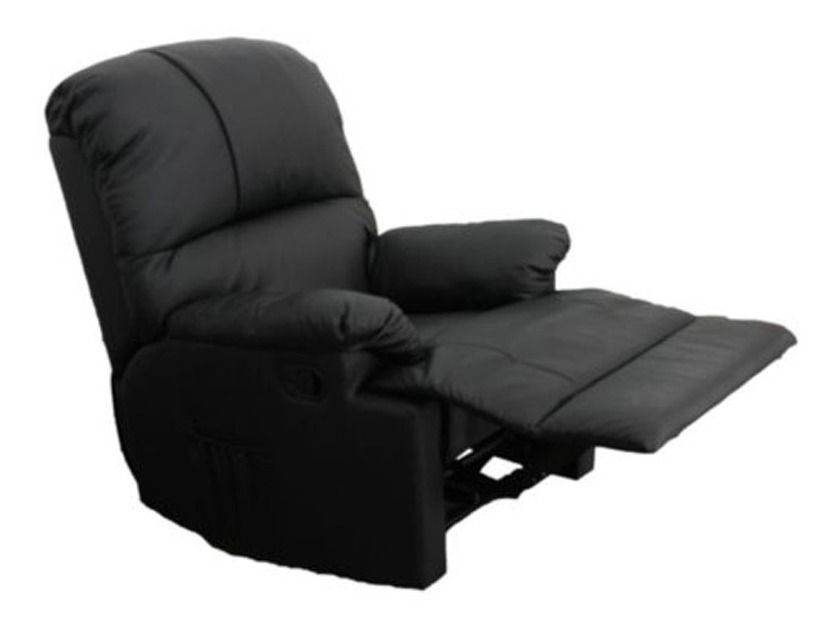 Sillon Poltrona Reclinable Ultra Premium De Ecocuero + Relax Negro Liso