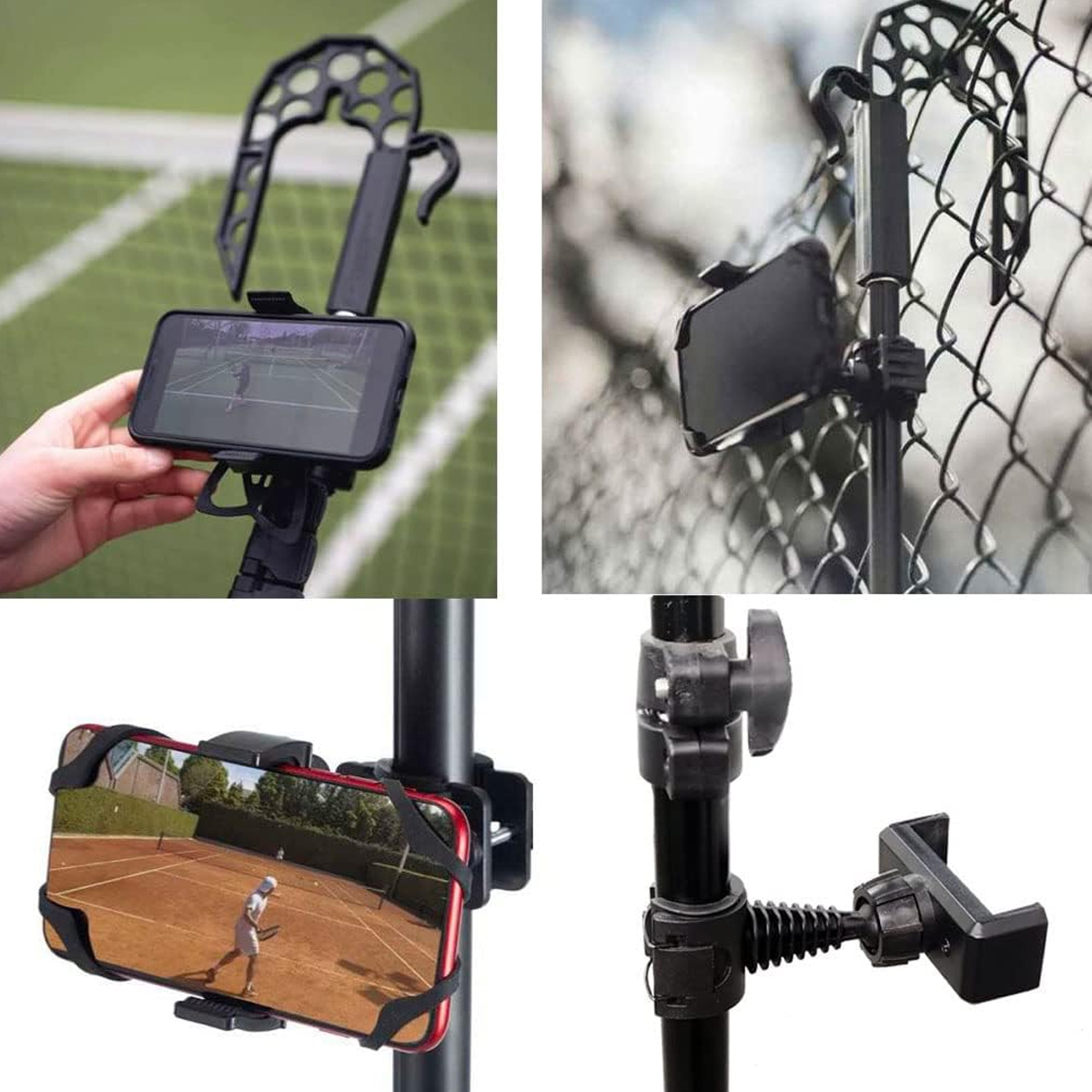 – Diseñado con abrazaderas para sujetar el soporte a la valla y el celular al trípode