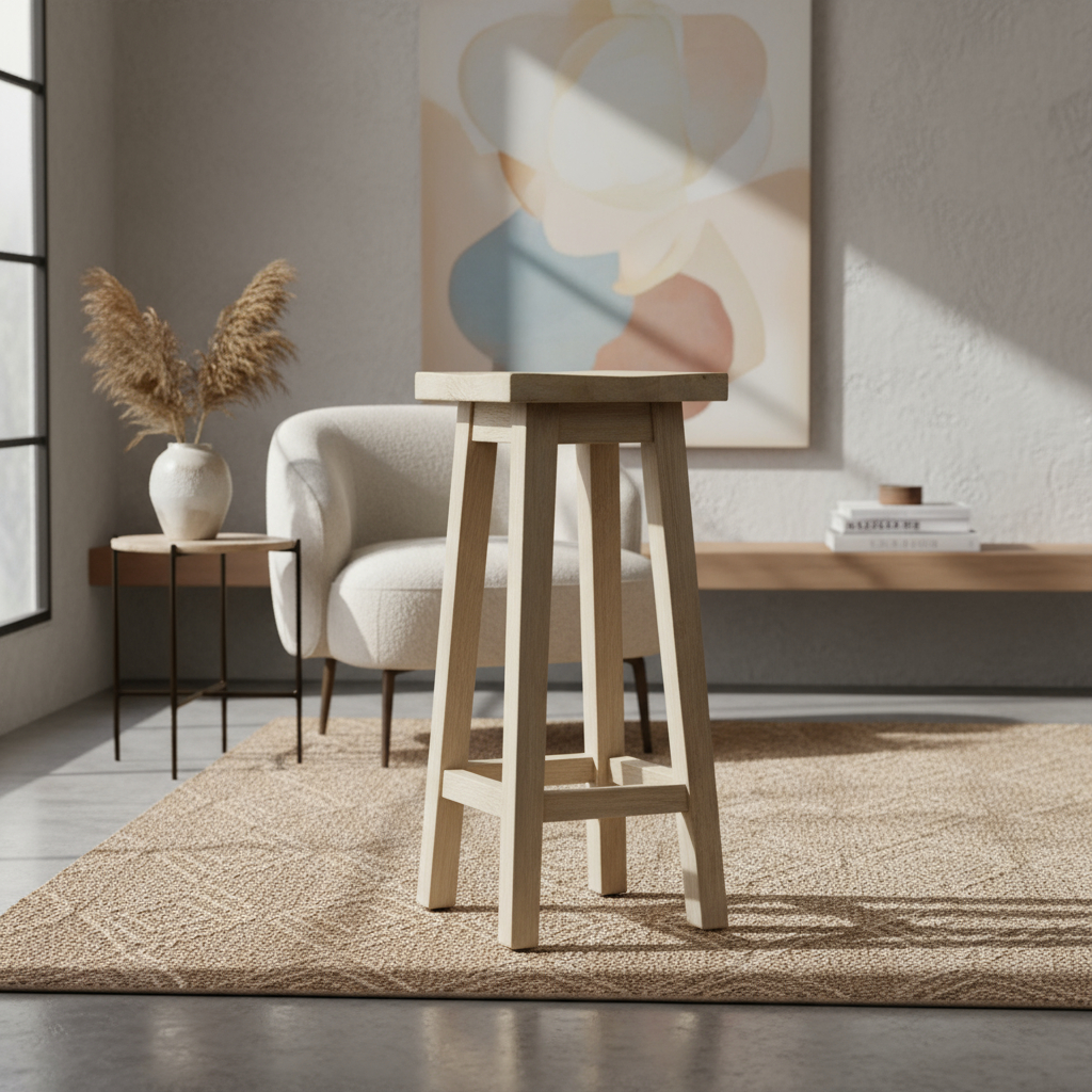 Taburete Banqueta De Alamo Alto Asiento Cuadrado