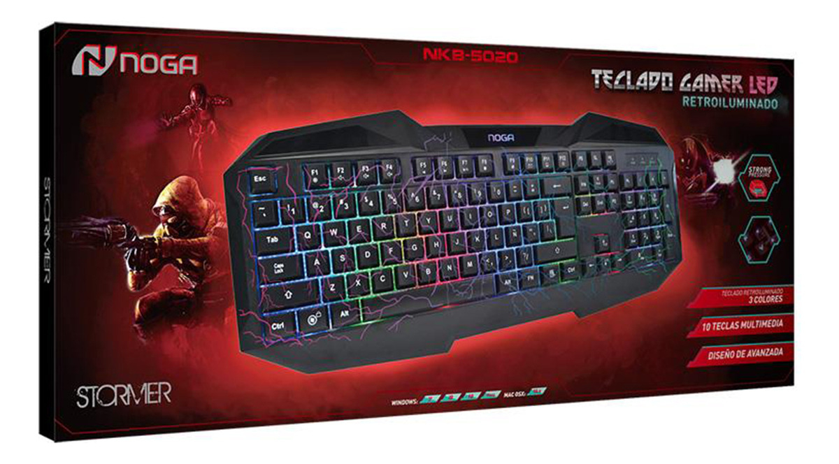 Teclado Gamer Pc Retroiluminado Usb Luces Led Noga Nkb-5020 Color Del Teclado Negro Español