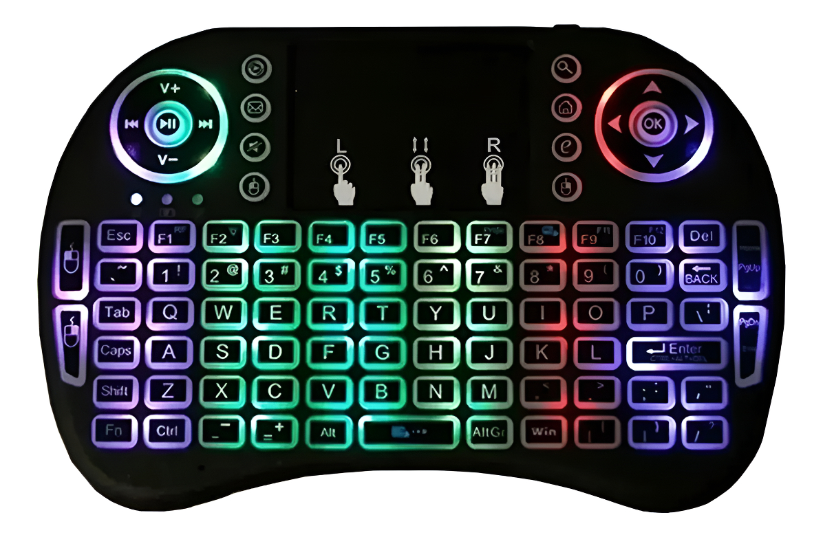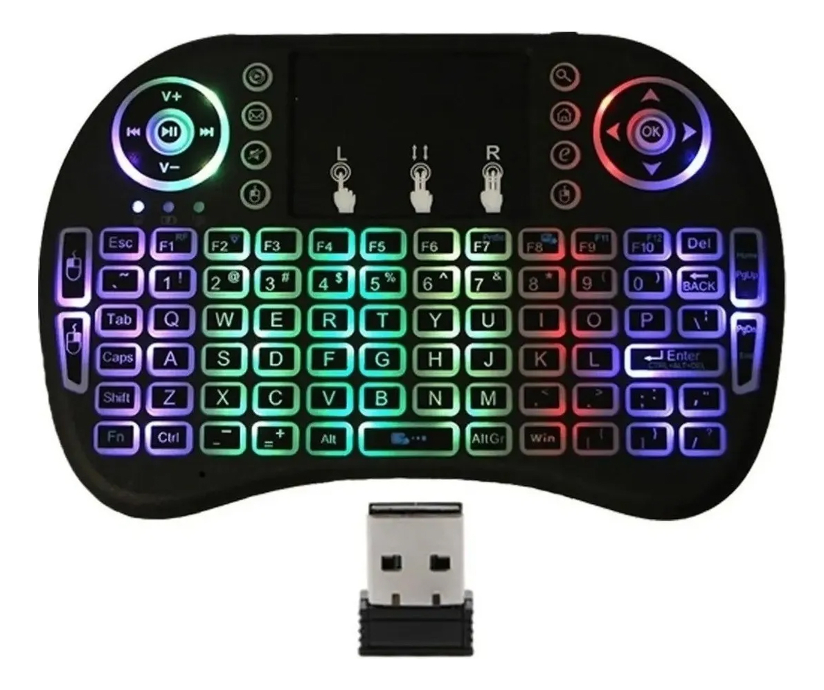 Teclado Inalambrico Smart Tv Tablet Luz Rgb + Multi Touchpad Negro Español