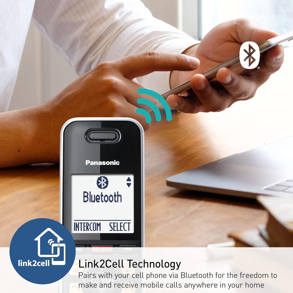 – Podrás vincular hasta dos teléfonos inteligentes a través de Bluetooth para hacer y recibir llamadas en cualquier lugar de la casa con teléfonos inalámbricos