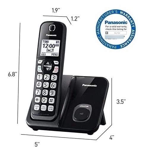 Disfruta de la claridad y fiabilidad de un teléfono fijo, con funciones fáciles de usar. El teléfono inalámbrico Panasonic KX-TGD610B es un sistema de teléfono doméstico de 1 auricular ampliable hasta 6 teléfonos (se vende por separado), con bloqueo de llamadas que hace que sea fácil detener las llamadas molestas, además de un identificador de llamadas bilingües que anuncia información de la llamada en inglés o español, por lo que nunca te perderás una llamada importante. La tecnología de reducción de ruido ayuda a hacer cada llamada lo más clara posible al reducir el ruido circundante procedente del teléfono de la otra parte, la alerta audible de batería baja te permite saber cuándo la batería necesita carga y una gama completa de funciones de teléfono manos libres te permite disfrutar de la movilidad y la flexibilidad. El altavoz dúplex completo te permite utilizar tu teléfono manos libres; el auricular se puede utilizar como un monitor para diferentes áreas de la casa (como la habitación de un bebé). lejos de casa.