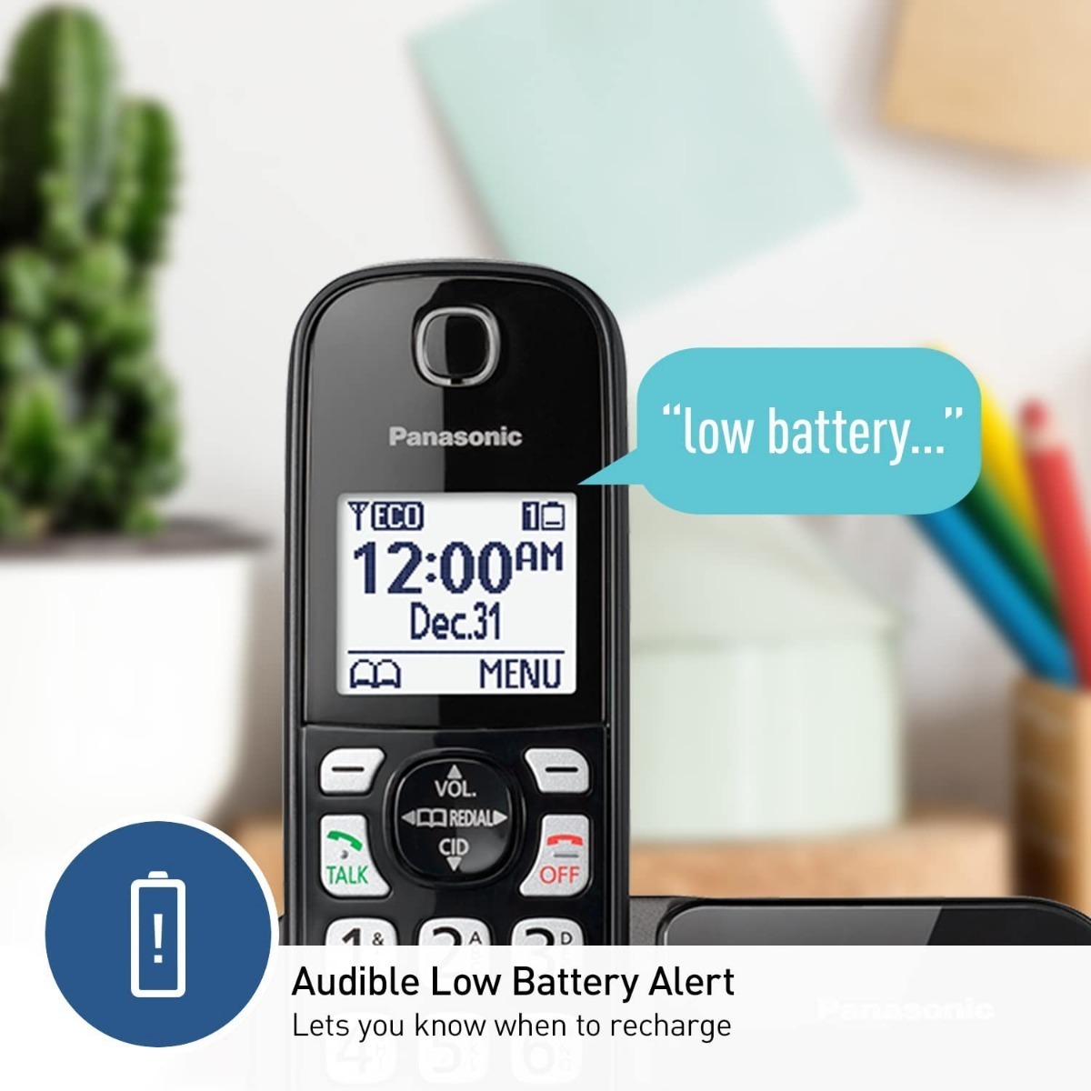 – Teléfono inalámbrico para el hogar: la pantalla del auricular de alto contraste y el teclado retroiluminado hacen que sea fácil ver quién está llamando y marcando incluso con poca luz; el sistema de teléfono doméstico se expande hasta 6 teléfonos inalámbricos (se vende por separado)