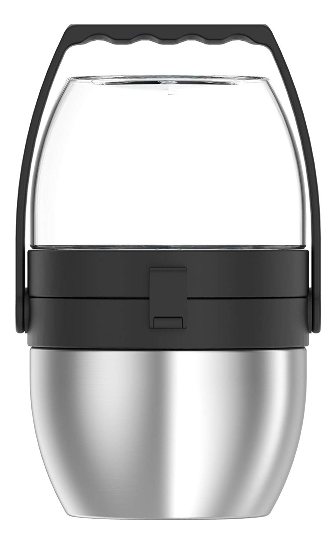 El frasco de alimentos de doble compartimiento de la marca Thermos es el contenedor de almacenamiento de alimentos reutilizable más nuevo e innovador del mercado. Dos compartimentos separados con bisagras hacen infinitas combinaciones para disfrutar de las comidas. Es el diseño ideal para almacenar sopa caliente en el compartimiento de acero inoxidable de 473 ml, y una ensalada fresca y refrescante en el compartimiento de Eastman Tritan sin BPA de 591 ml. La tecnología de aislamiento térmico al vacío mantiene el contenido en el compartimiento de acero inoxidable caliente por 5 horas o frío por 7, y los alimentos calientes se mantendrán calientes incluso cuando el frasco de alimentos se almacena en un refrigerador. De tamaño compacto, este frasco para alimentos cuenta con un asa de transporte integrada para un fácil transporte. Como beneficio adicional, el frasco para alimentos viene equipado con un tenedor plegable de acero inoxidable de tamaño completo que cabe dentro de la tapa, lo que elimina la necesidad de empacar utensilios separados.