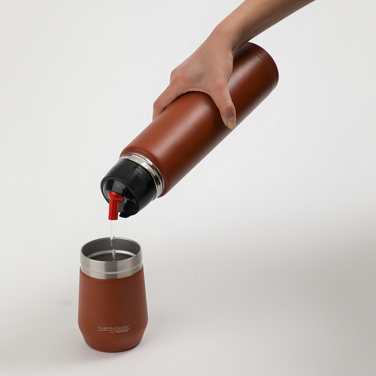 Experimenta la calidad de este termo Thermocafe con el que vas a poder disfrutar de cualquier infusión. Llévalo a donde quieras y ten listo tu café, té, o jugo rápidamente.