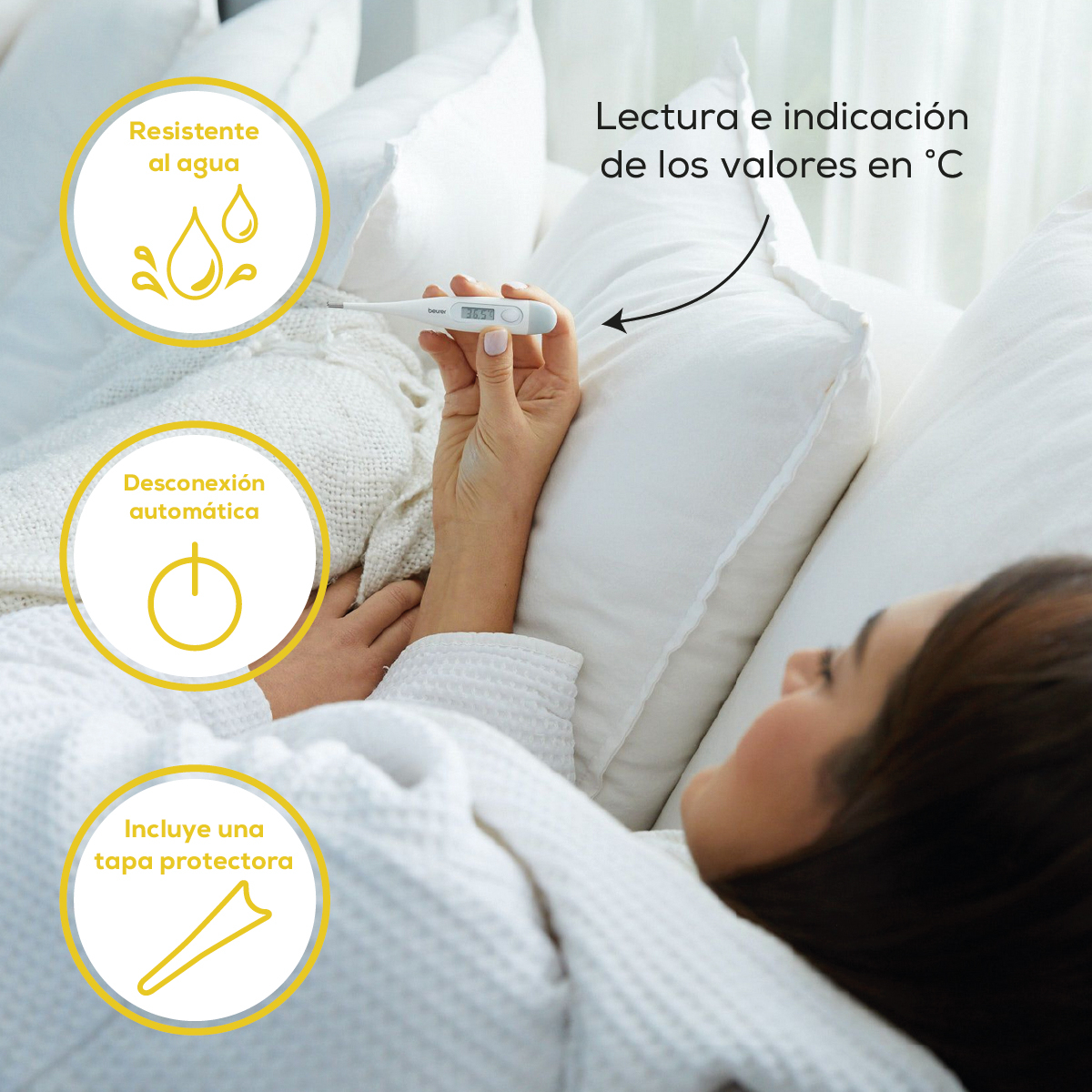 – El termómetro clínico con técnica de medición por contacto es fácil de usar